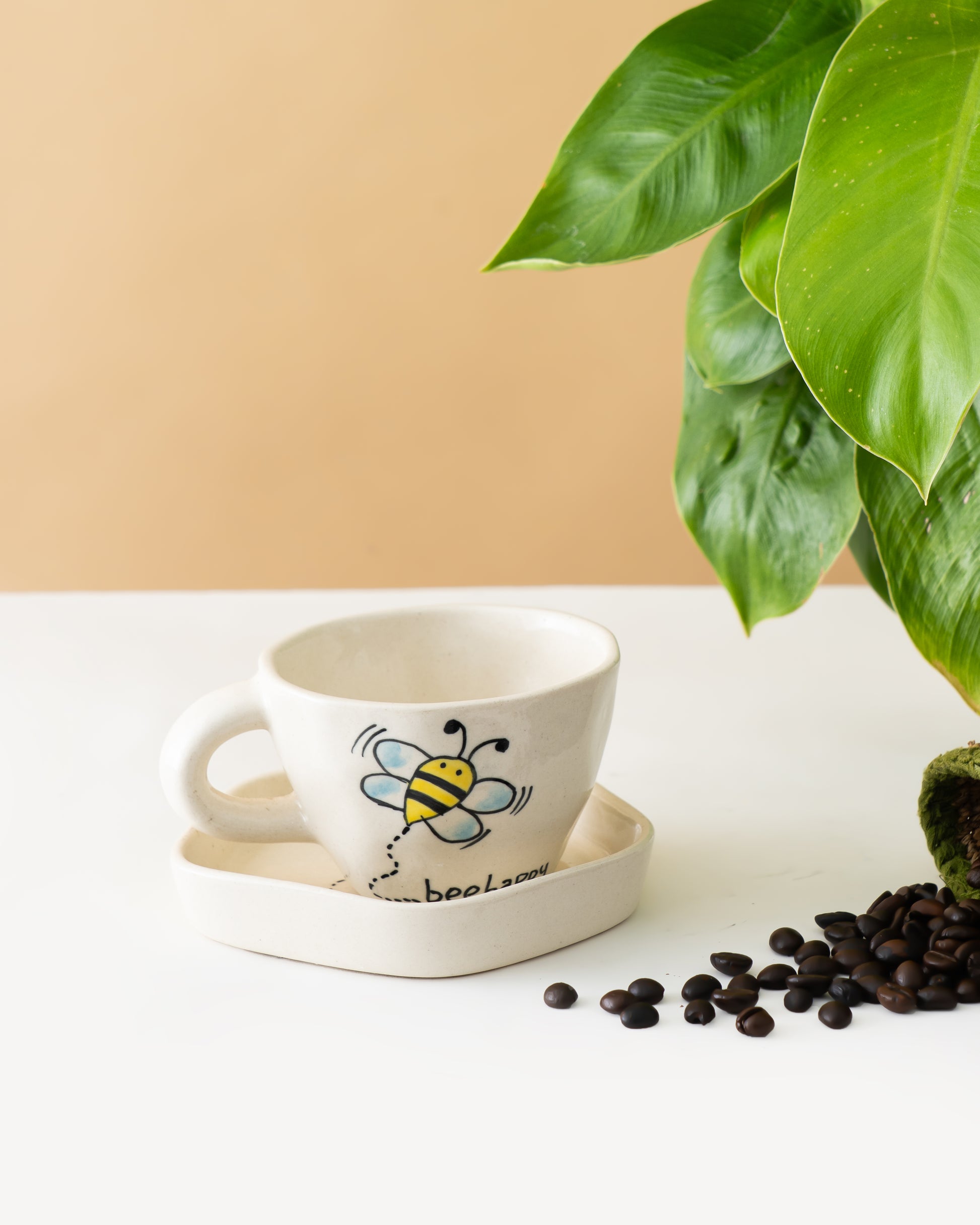 Bee Happy Ceramic Cup & Plate Set - RVCUPSAU8