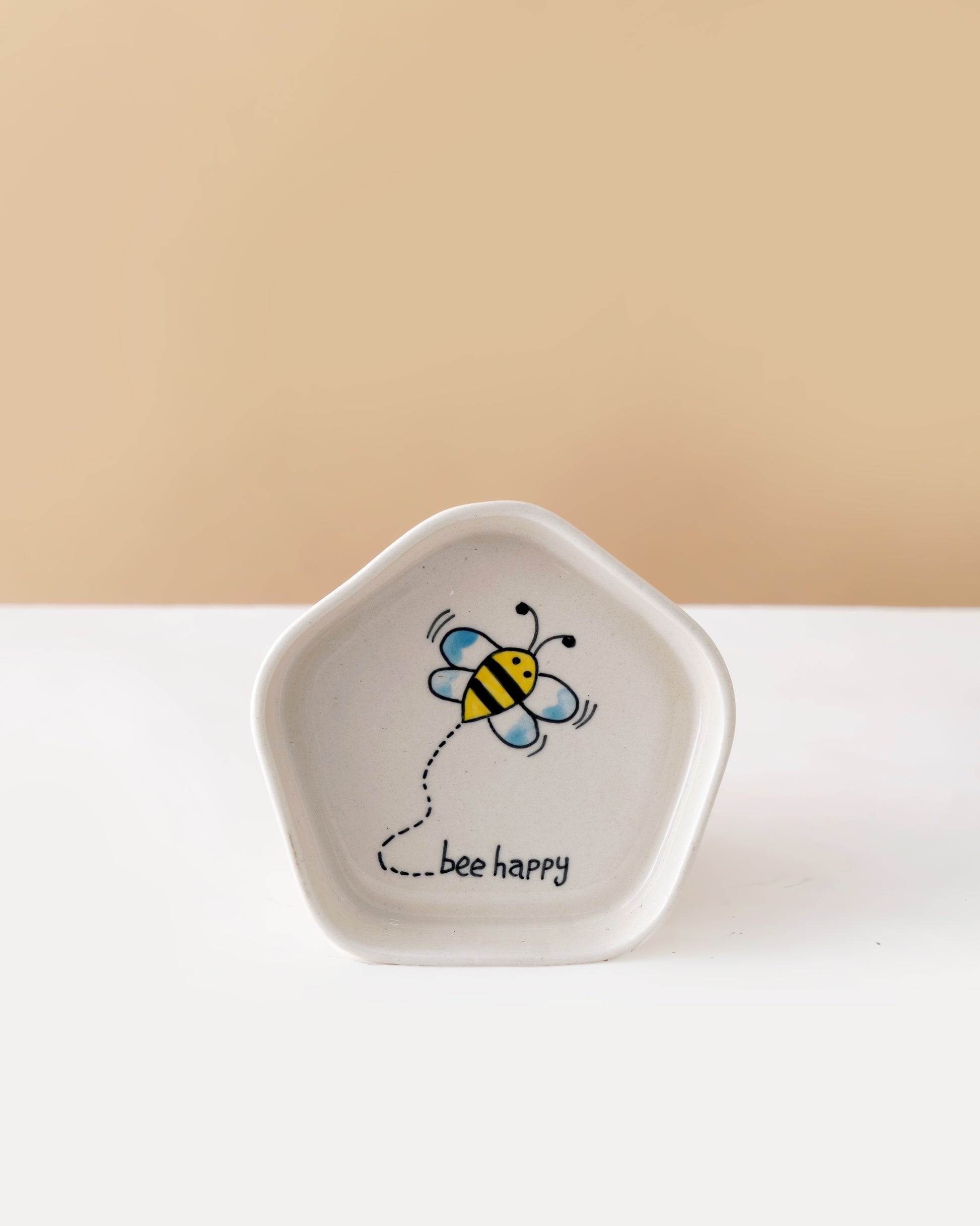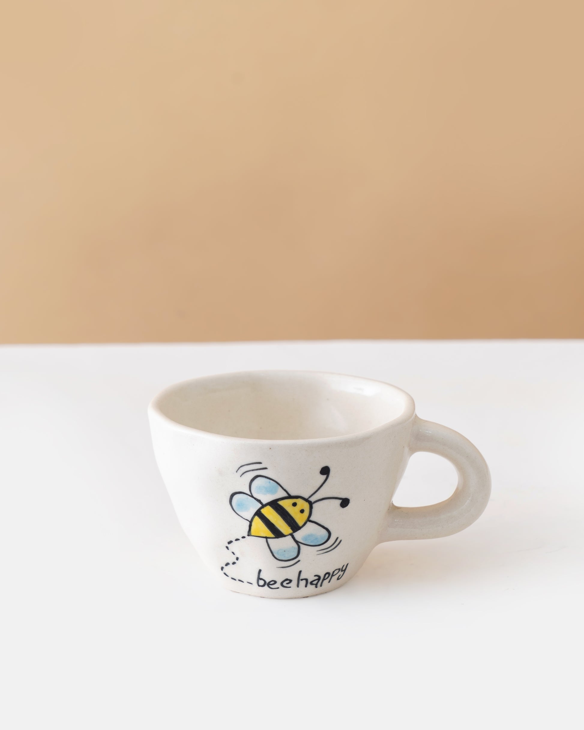 Crafted from high-quality ceramic, each piece is finished with a soft, natural glaze and gently rounded edges that highlight its handmade appeal. The cheerful bee motif, paired with calming neutral tones, makes this set both heartwarming and timeless—perfect for brightening your mornings or gifting someone special.