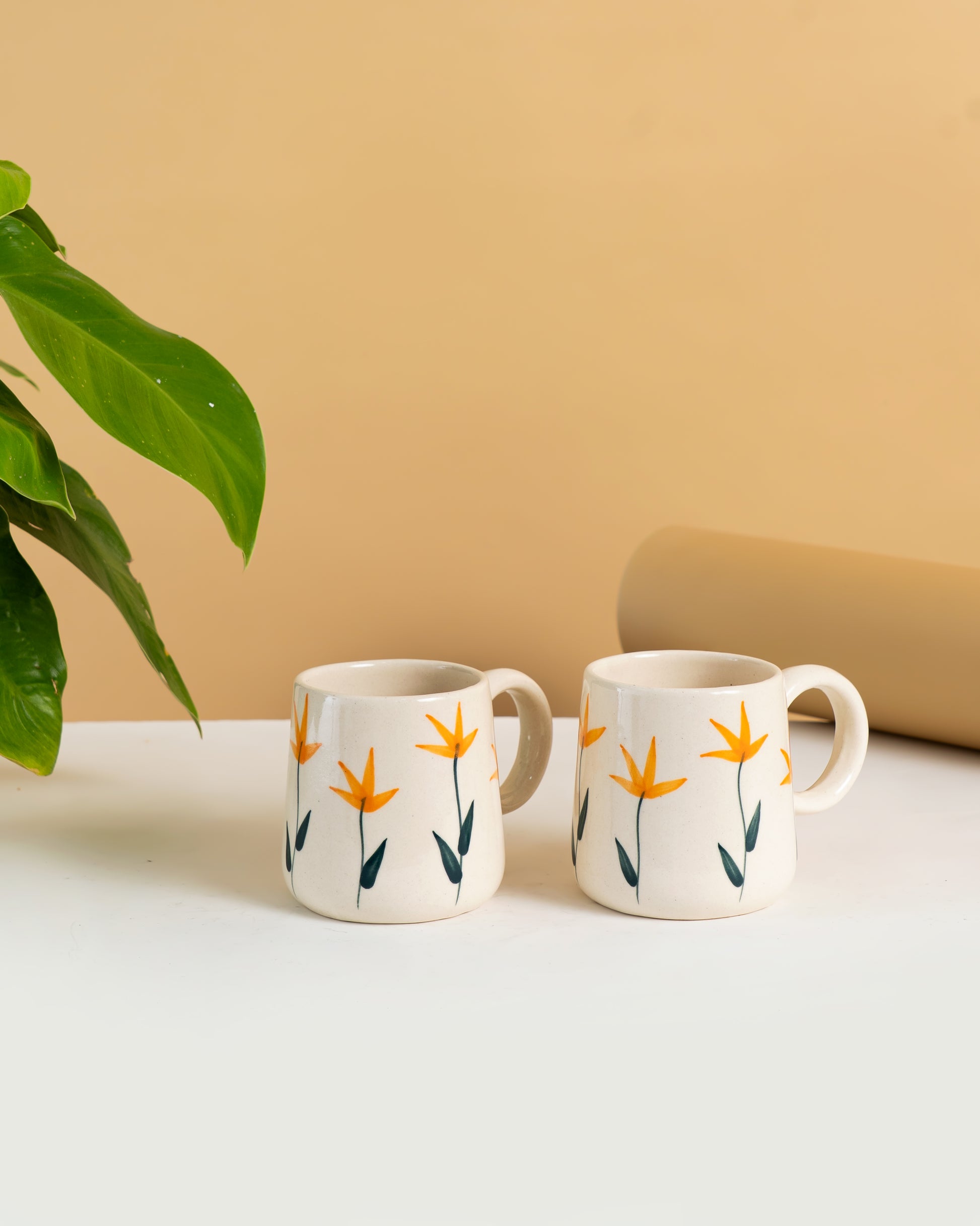 Brighten your everyday coffee and tea moments with this elegant ceramic mug set, adorned with delicate hand-painted floral motifs. Featuring soft ivory tones with cheerful yellow blooms and subtle green detailing, these mugs bring a sense of calm, warmth, and nature-inspired beauty to your table.