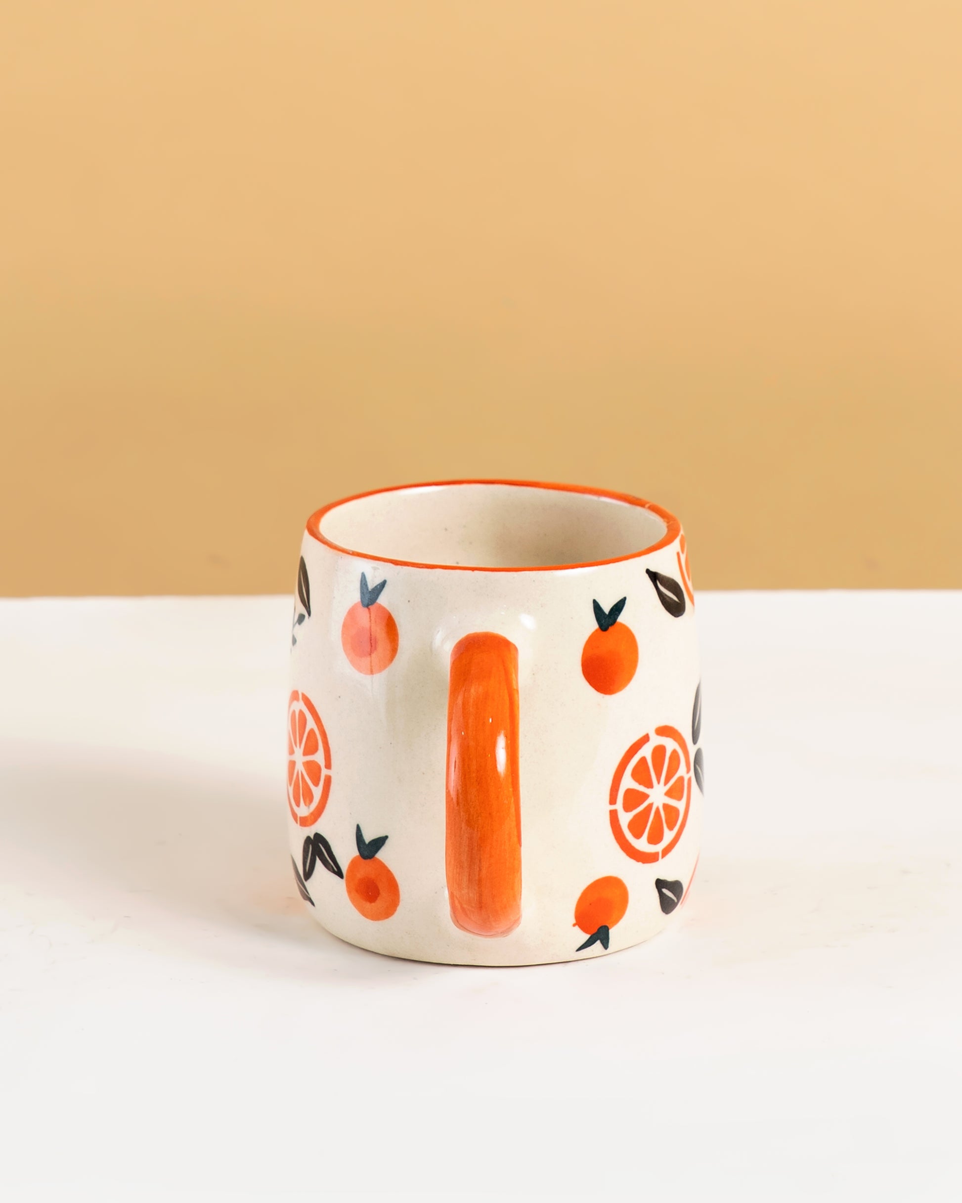 Each mug is handcrafted from ceramic and carefully hand-painted, giving it a unique, artisanal character. The warm cream base beautifully complements the vibrant citrus design, making these mugs both eye-catching and timeless. Perfectly sized for coffee, tea, or warm beverages, they add a joyful pop of color to everyday moments and special gatherings alike.